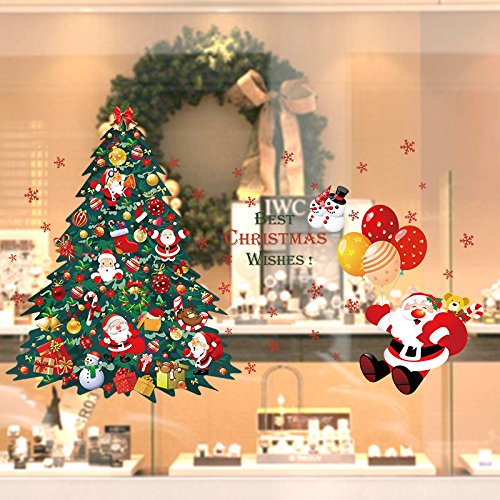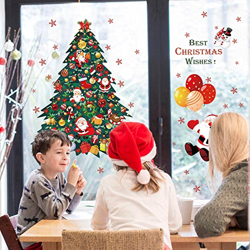 Amaonm Fashion Giant Green Christmas Tree Wall Decal Removable DIY Home Decorations art Decor Christmas Gift Sticker for Kids Snowflake Santa Claus Lettering Wall Stickers Murals for shop Window