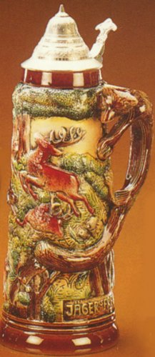 -. Title : Bierseidel Bierkrug "Fuchshenkel Jagdseidel" 1,5L, aus deutschem Edel- Feinsteinzeug, Handbemalt, Zinndeckel mit 97%Zinn