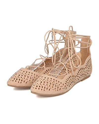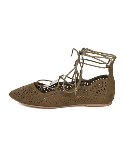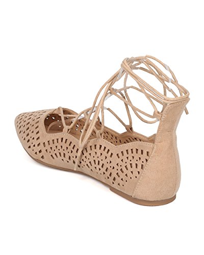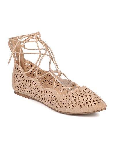 Women Faux Suede Ballet Flat - Perforated Ballerina Flat - Lace Up Ankle Tie Flat - GI25 By Wil...