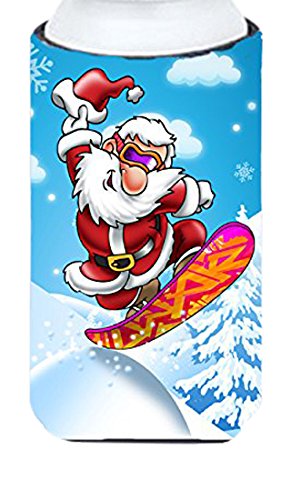 Caroline's Treasures Christmas Santa Claus Snowboarding Tall Boy Koozie Hugger, Multicolor