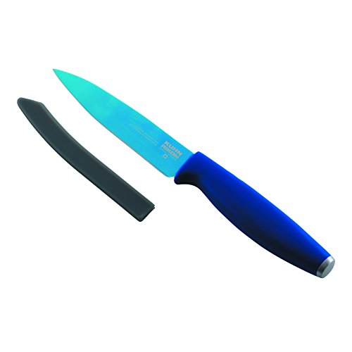 - Ice-hardened Japanese stainless steel blade is long-lasting and ultra-sharp. Titanium coating protects and strengthens the blade