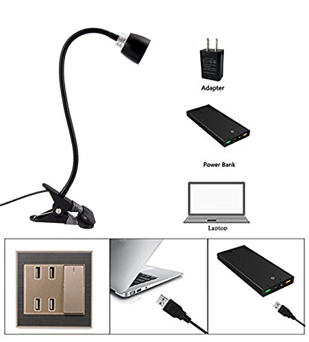 FOCUSAIRY Energy-Efficient 3W LED Table Desk Lamp Reading Light 2 Brightness Levels Reading Lamp Night Book Light Clip On for Desk Bed Headboard and Computers with USB Cable & AC Adapter (Black)