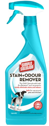 -. Binding : Misc. -. Brand : Simple Solution -. Feature : Simple Solution Dog Stain & Odour Remover is the only formula which contains both Pro-Bacteria and enzymes which effectively remove stains and odours. / Simple Solution is completely safe for use around pets and children. / The formula has been specifically designed to clean mess from pets such as vomit, urine and faeces, completely ridding your home of odours and discouraging pets from repeat marking. / Safe for use on carpets. upholstery, bedding, clothing and any other water-safe surfaces. -. Label : BRBYE -. Manufacturer : BRBYE -. PackageQuantity : 1 -. ProductGroup : Pet Products -. ProductTypeName : PET_SUPPLIES -. Publisher : BRBYE -. SKU : VB-O6I6-OKWN-$P -. Studio : BRBYE -. Title : Simple Solution Stain And Odour Remover For Dogs