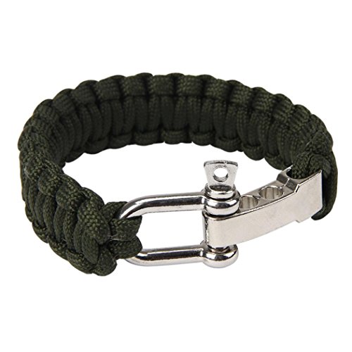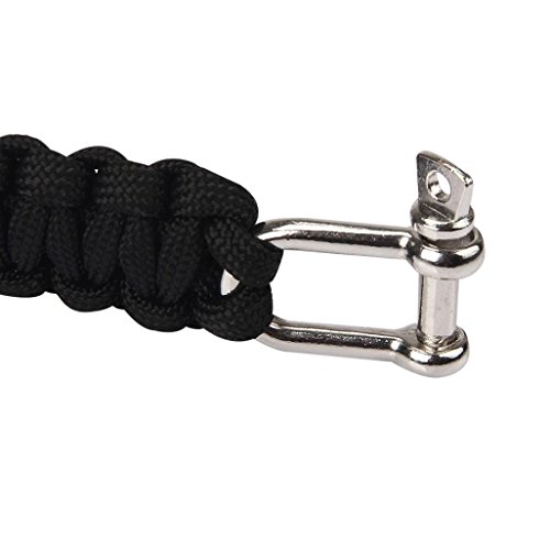 Description: 100% Brand New A survival bracelet with Stainless Steel Shackle Knitted up by several feet of parachute cord which can be used in an emergency or packaging. Ideal accessory for camping, boating, hunting, hiking, and other sports activities. Outdoor environment, carry a quick release rope, can be a clothesline, tents spare rope, packaged goods, spare parts, etc. Can be used for various purposes . Please measure your wrist with a rope. The bracelet is for wrist less than 9.9 inch (25cm). You can knit again if you don't like a loose fit on your wrist. Feature: Break Strength: 550 pound / 249 kg approximately Length of Bracelet: 20-25cm Material: Parachute cord Color: Black Quantity: 1 pcs Package Included: 1 x Stainless Steel Buckle ParaCord Bracelet 0