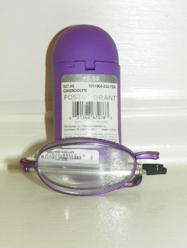 -. Brand : Magnivision -. Feature : Quality material and craftmanship with fold up convenience / Fold up mirror / Comfort nose rest for the most comfortable fit possible. / Optically correct lens & SP.R.Ing Hinges for a GREAT FIT! -. Label : Magnivision / Foster Grant -. Manufacturer : Magnivision / Foster Grant -. PackageQuantity : 1 -. ProductGroup : Health and Beauty -. ProductTypeName : PERSONAL_CARE_APPLIANCE -. Publisher : Magnivision / Foster Grant -. Studio : Magnivision / Foster Grant -. Title : GWENDOLYN +1.50 Purple Retractable Foster Grant Reading Glasses (182)