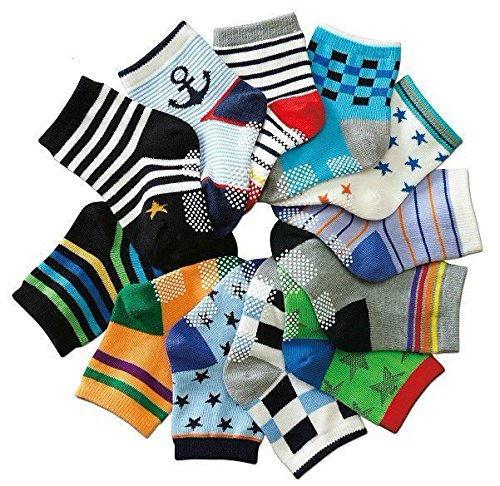 B&S FEEL Baby's Assorted 12 Pairs Cotton Socks (Anti-slip 1 to 3 Years Old)