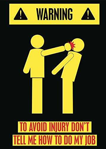 -. Title : Warning To Avoid Injury Don't Tell Me How To Do My Job Funny Bright Caution Picture Black Background Poster Wall Sign