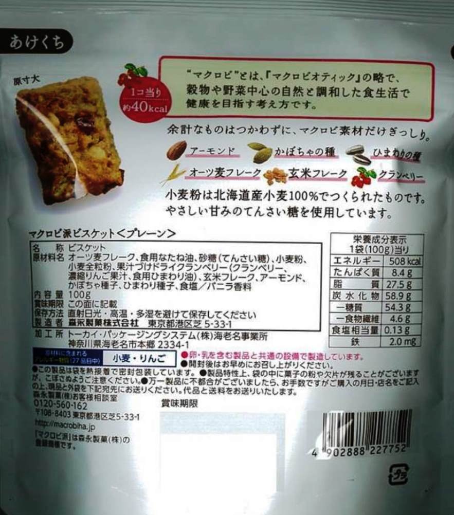 ● Without using white sugar · butter · margarine, grilled biscuits of a size that you can taste ingredients baked with macrobiomous material alone.