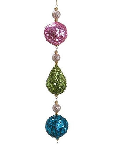 Allstate Christmas Whimsy Pink Green/Blue Sequin Ball and Drop Dangle Ornament, 9"