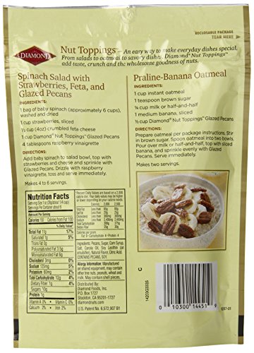 Pack of six,5.5 ounce (total of 33 ounces)^This product is used by many restaurants for excellence in taste and flavor; Diamond has been a company trusted by chefs and foodservice for over 100 years; Chefs love using this quality product from Diamond Foods^Diamond is a go-to destination for foodservice, chefs and restaurants for the finest quality in nuts; Kosher; Premium quality nuts since 1912; Reclosable package; Try on salads and oatmeals