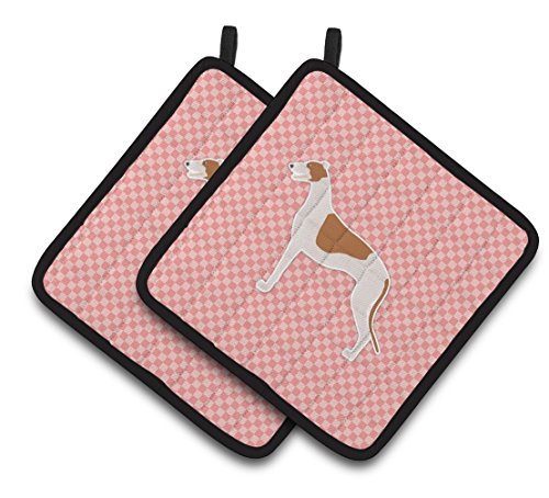 Caroline's Treasures Greyhound Checkerboard Pink Pair of Pot Holders BB3605PTHD, 7.5HX7.5W, Multicolor