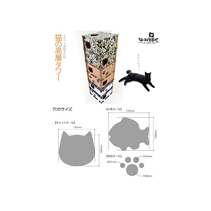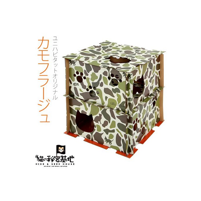 UNIHABITAT(유니 Habitat) 고양이의 비밀 기지 UCT-09-CF [ 골판지 하우스 복수대 연결 가능 고양이의 본능을 간지럽히는 장치가 가득 ]