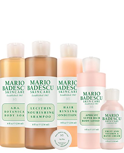 ReleaseDate : 2015-02-01 Studio : Mario Badescu Publisher : Mario Badescu Binding : Health and Beauty Product Description Treat yourself or someone else to our best, deliciously scented bath and body products. Rejuvenating body soap (sponge included), intense lip repair, rich hand cream with sun protection, silkening body lotion and our simple and natural shampoo and conditioner packaged together. Makes a great gift idea for the holidays or a special occasion. 0