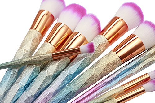 SJZ TECH 10PCS Makeup Brush Set, Professional Unicorn Rainbow Foundation Blush Eyebrow Eyeshadow Powder Cosmetic Brushes