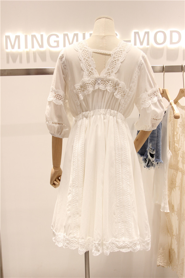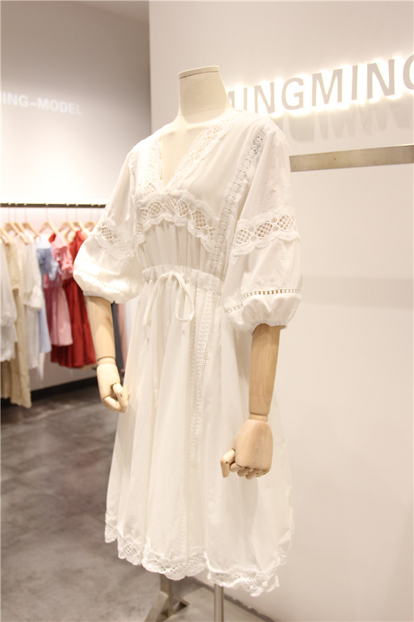 在裙角和领口处都有点缀一圈形式呈现,有一种甜而不腻的美感,