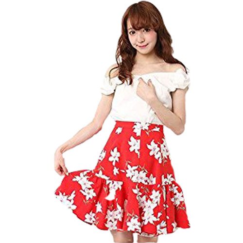 -. Title : レディース 花柄 フレア フラウンス ひざ上丈 ショート丈 スカート ボトムス 人気 春物 夏物 美脚 脚長 美シルエット 女性 大人 カジュアル おしゃれ 清楚 上品 ファッション レッド ブラック ライトブルー S M サイズ