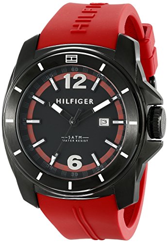 -. Binding : Watch -. Brand : Tommy Hilfiger -. Color : black -. Department : mens -. EAN : 0885997146111 -. Feature : Quartz movement / Durable mineral crystal protects watch from scratches / Quartz Movement / Case Diameter: 46mm / Water Resistant To 165 Feet -. Label : Tommy Hilfiger -. Manufacturer : Tommy Hilfiger -. Model : 1791112 -. MPN : 1791112 -. PackageQuantity : 1 -. PartNumber : 1791112 -. ProductGroup : Watch -. ProductTypeName : WATCH -. Publisher : Tommy Hilfiger -. Studio : Tommy Hilfiger -. Title : Tommy Hilfiger Men's 1791112 Cool Sport Analog Display Quartz Red Watch -. UPC : 885997146111