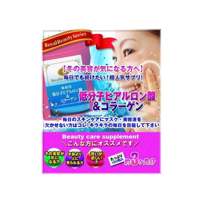 원본상품명: ロイヤルビュ?ティ?シリ?ズ 業務用 低分子ヒアルロン酸&コラ?ゲン 300mg x180粒