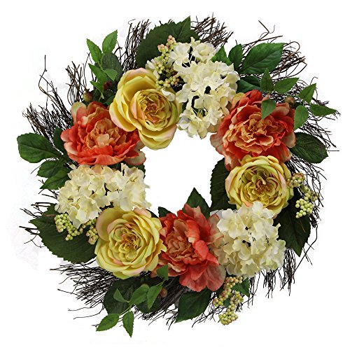 Admired By Nature 24" Rose, Hydrangea, Peony Spring Greenery for Home Office Front Door Wreath, Wall Hanging Arrangement Decoration