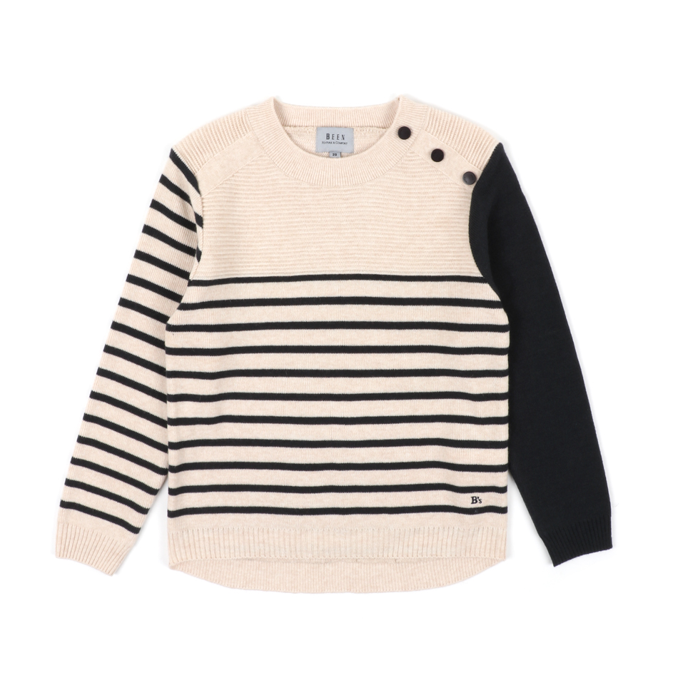 두껍지 않으면서 가볍고 포근한 느낌의 스웨터 입니다. 위쪽은 골지, 아래쪽은 플레인 짜임으로 활동적인 느낌을 주었고 어깨 한쪽에 단추 디테일을 더하였습니다. 위 아래 어떤 코디와도 잘 어울리는 아이템으로 멋스러운 코디를 완성합니다.