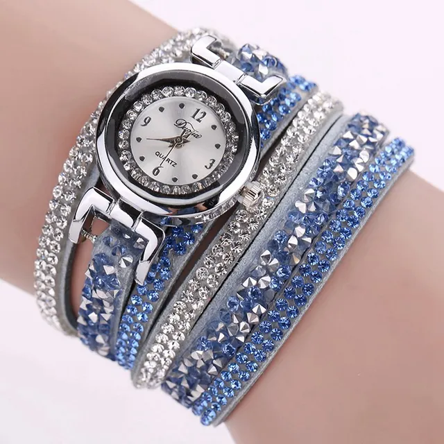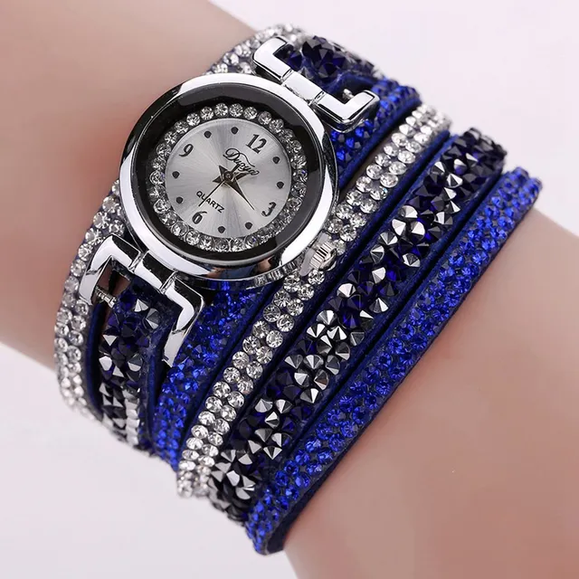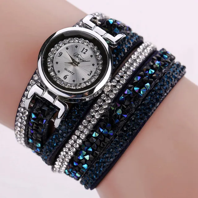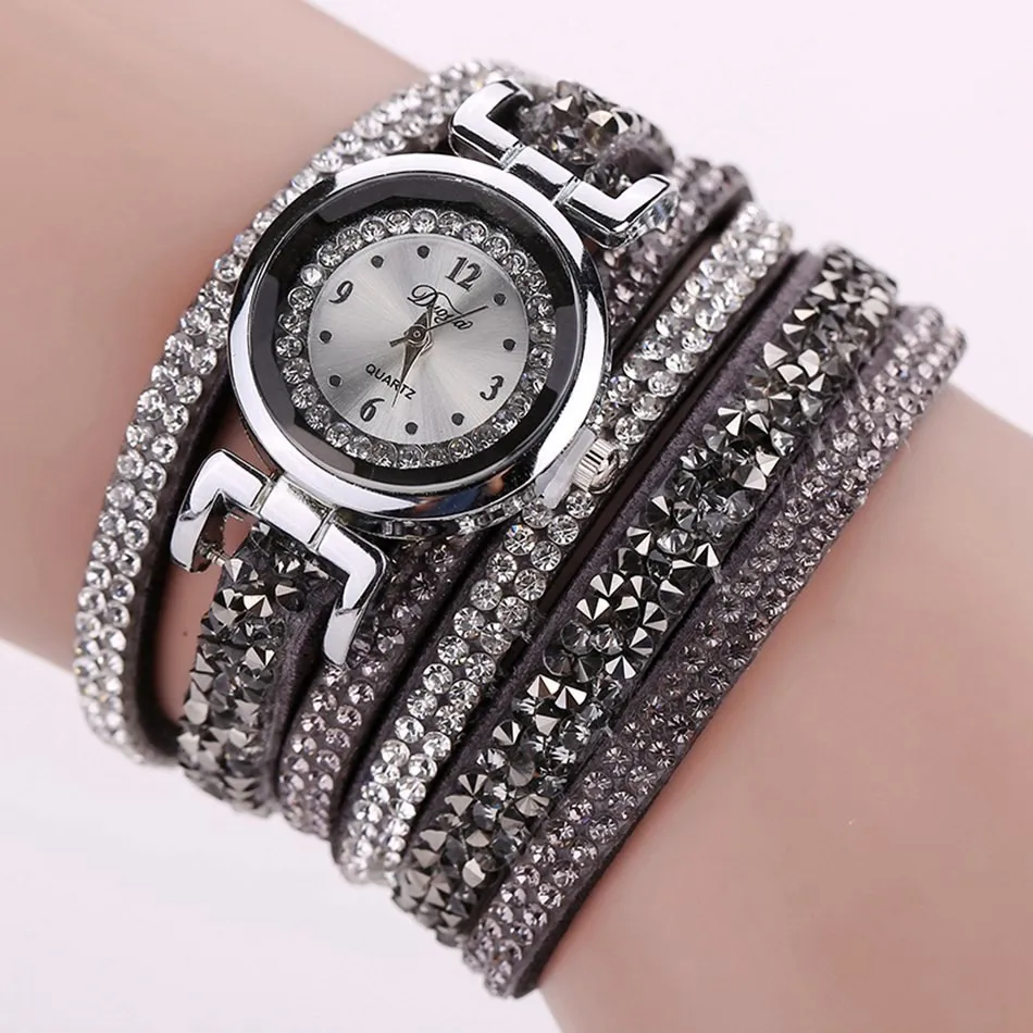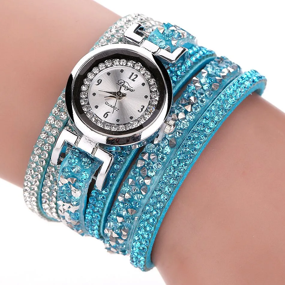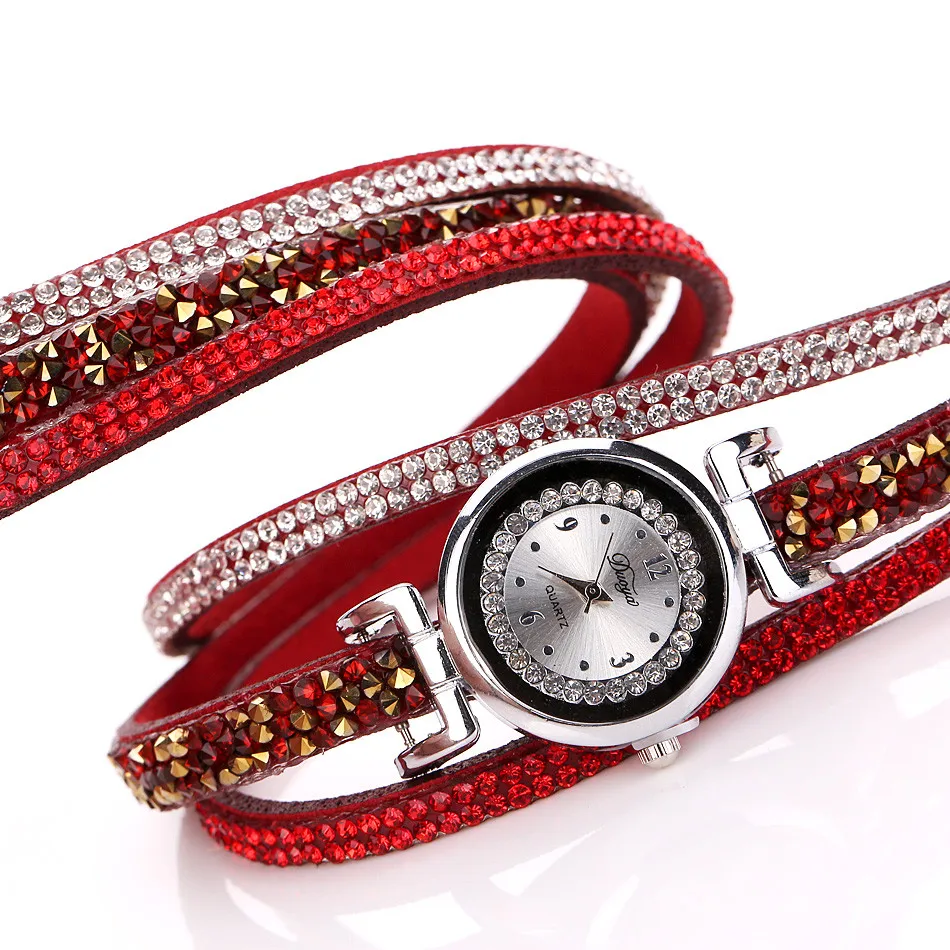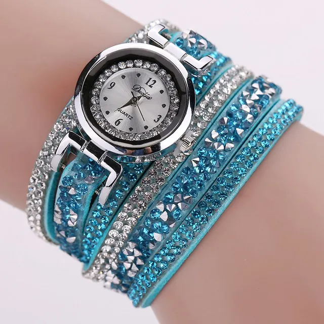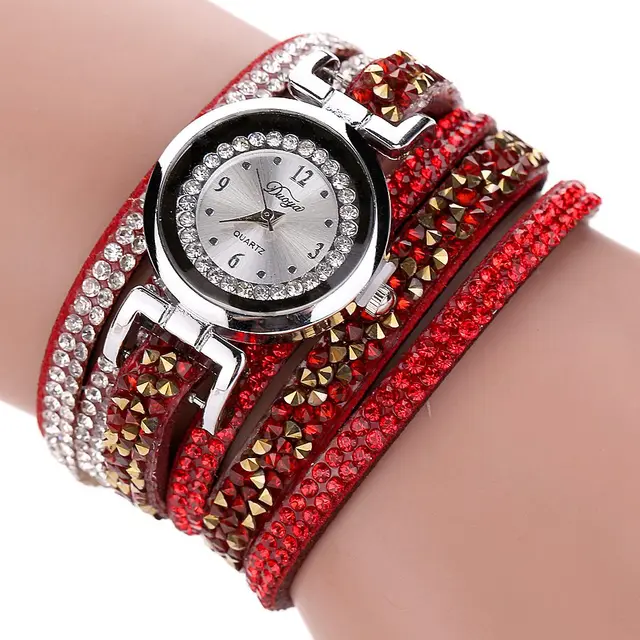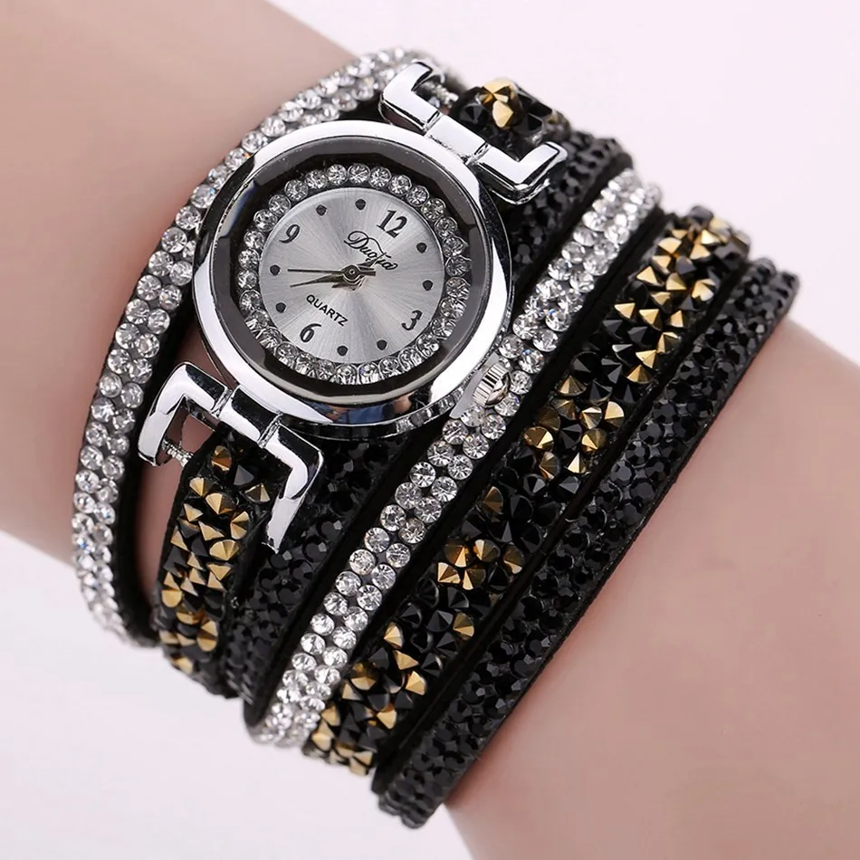 | [해외] Duoya 새로운 골드 숙녀 가죽 유행 실버 팔찌 시계 손목 시계 크리스탈 패션 여성 돌 석영 리벳 시계 |