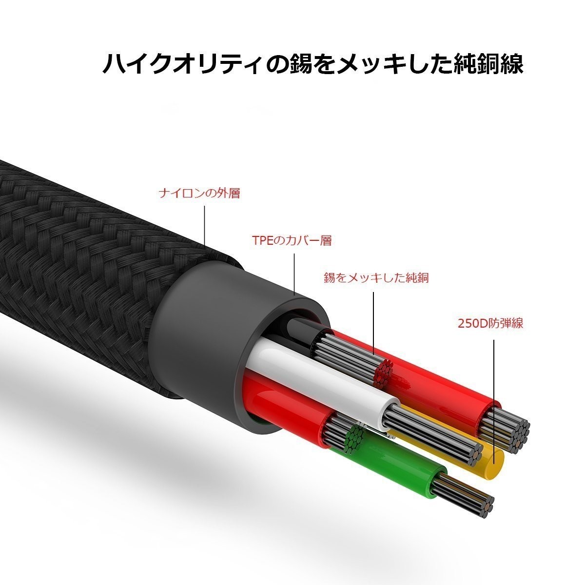 【高い耐久性】:高品質のナイロン編みによる充電ケーブルは柔軟性が良く、耐久性も抜群です。数万回以上折り曲げても、性能上のダメージや変化はありませんでした。