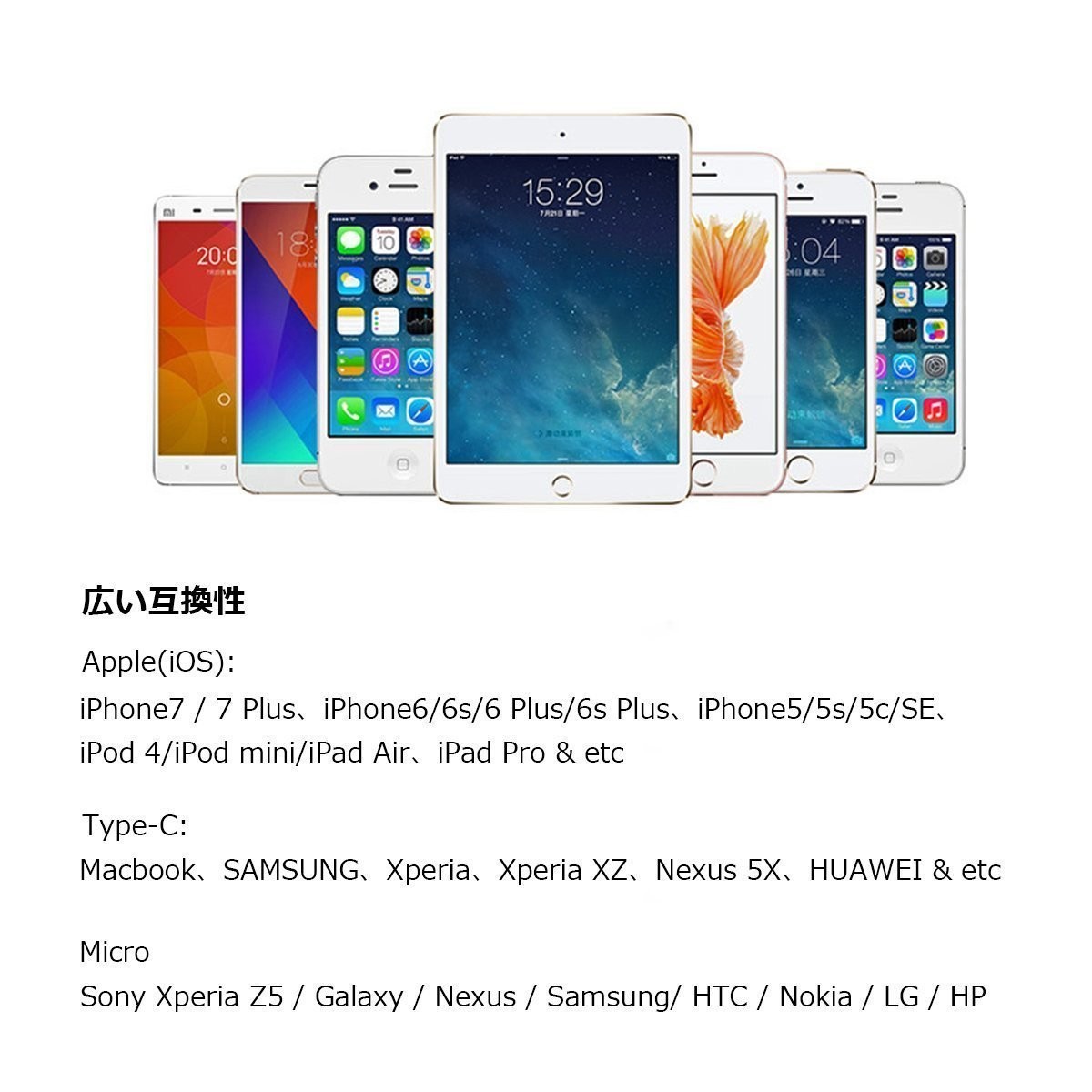 【幅広い互換性】:ほぼ全てのiOSやAndroidなどの設備に対応できます。iPhone8 8plus / 7 7plus / 6plus 6splus / 6 6s / SE 5s 5 / iPad / Macbook,Nexus / Sony / Samsung Galaxyなどのデバイスにほとんど対応できます。