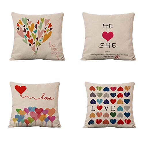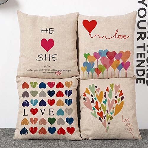 Set of 4 Sofa Throw Pillow Covers, YIFAN 17*17 Inch Colorful Love Heart Decorative Pillowslip Square Fashion Throw Pillow Case Cushion Cover Home Decor