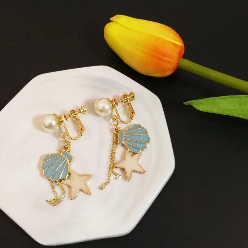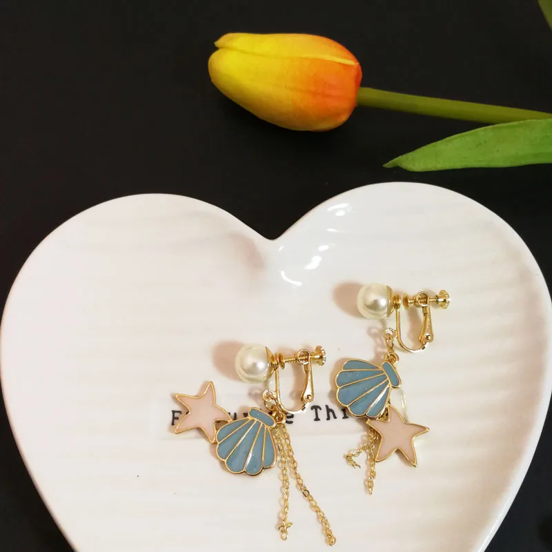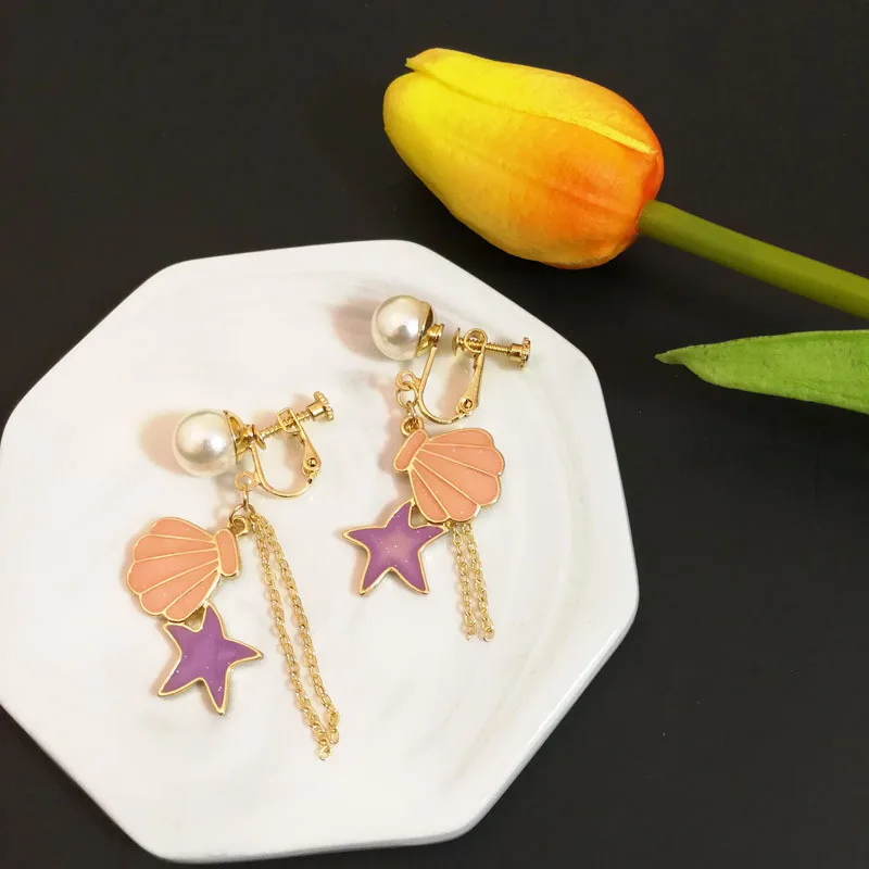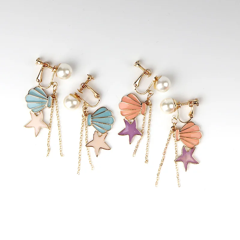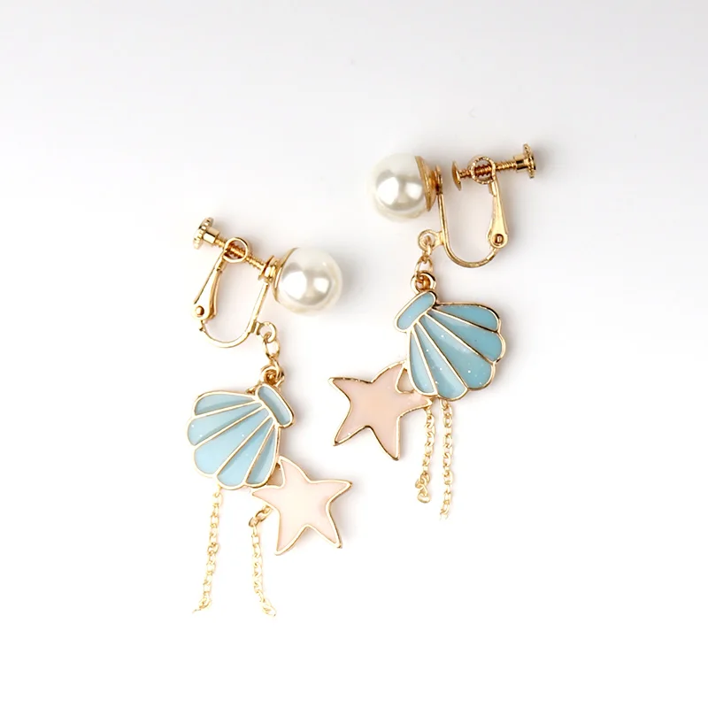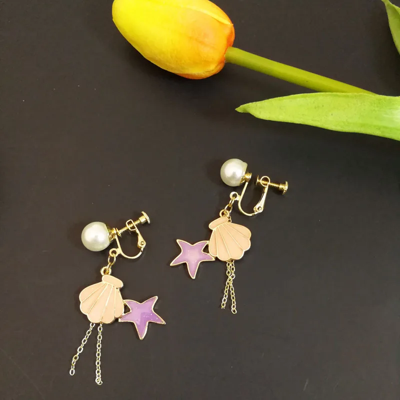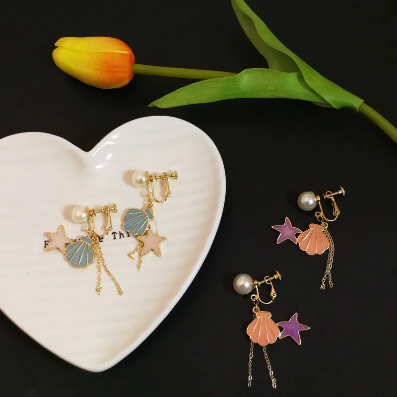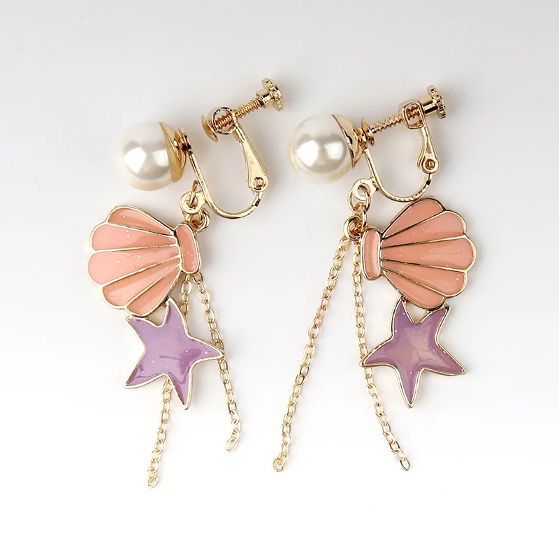 Decaration:shell Starfish Clip Earrings