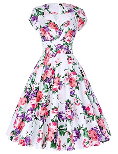 3,The pinup floral vintage dress is suitable for cocktail, wedding, 50's themed party, banquet,pageant, church,daily life and more!