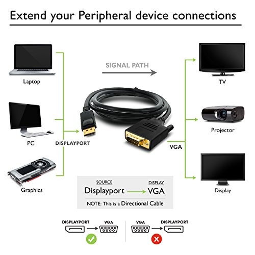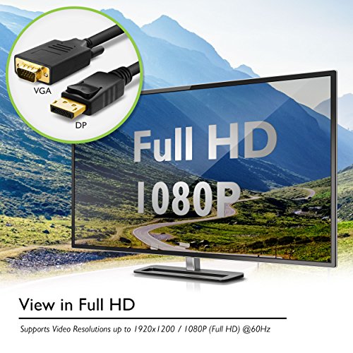 GearIT Gold Plated DisplayPort to VGA Cable 6 Feet (DP Male to VGA Male) 28 AWG, Black