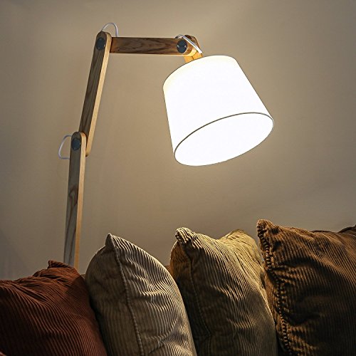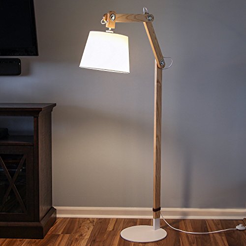 - MODERN DECORATIVE DESIGN - The Brightech Oliver LED Floor Lamp brings a classy yet modest touch with a welcoming aura to any room in your house, apartment, or office. Featuring a natural blonde ash body crafted from real wood intersecting with a telescoping pole suspending the elegant white fabric shade, Oliver enhances the inviting atmosphere of any interior decorating style. Perfect for urban, contemporary, minimalistic, traditional, or even rustic themes, Oliver is ready for the spotlight!