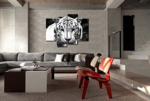 - Title : Black & White 4 Panel Wall Art Painting Blue Eyed Tiger Prints On Canvas The Picture Animal Pictures Oil For Home Modern Decoration Print Decor For Kitchen