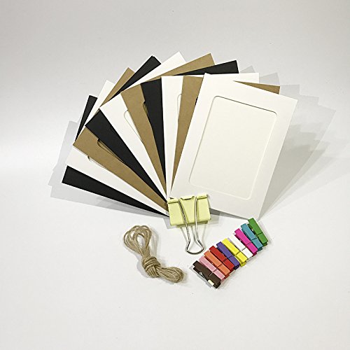Jahosin 5x7in Paper Picture Frames,DIY Photo Frames Creative linkage mounted Cardboard with Flax String and Clips,3 Colors (10pcs3se PF, 5x7)