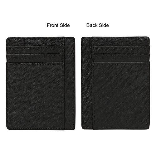 -. Feature : Structure: 8 Card Slots, 1 Bill Compartment / Measures: Length: 4.33"(11cm), Width: 3.15"(8cm), Thickness: 0.2"(0.5cm), Weight: 60g / Minimalist Design: Perfect Fit In Pants / Front Pocket Without Bulge / Material: It Is Made of Cross Grain Leather, Anti Crease, Scratch-proof and Durable