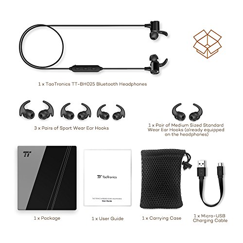 TaoTronics Bluetooth Kopfhorer 4.1 In Ear Kopfhorer bis zu 7 Stunden Spielzeit mit AptX, IPX5 Wasserfest, Magnetische Ohrhorer, Mikro mit CVC 6.0, kompatibel mit iOS Android Gerate