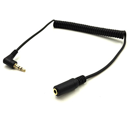 Duttek 1.5M/ 5 Ft Golden Plated 3.5mm TRS 3 Pole Right Angle 90 Degree Male to Female Coiled Spring Spiral Aux Audio Stereo Jack Extension Cable Cord (3.5mm TRS M/F)