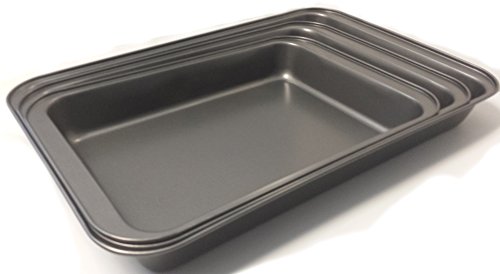 - Feature : LIFE TIME SATISFACTION GUARANTEED: Imagine buying a product for you, your friends, and your family or even in a holiday gift exchange. Now imagine knowing that you can take that product back and refund your money no questions asked. The simple fact of knowing that a company has your best interests in mind is very reassuring and also refreshing. / DESCRIPTION OF ADMIRALTY SIGNATURE BAKEWARE 3-PC DEEP DISH PAN SET: Often, the type of bakeware you use determines the success or failure of a recipe. Some bakeware conducts heat poorly, while others discolor certain foods. And certain pans or dishes can give food a metallic taste. But getting the most expensive bakeware doesn't guarantee the best results; the key is to use the bakeware best suited to what you are making. This set is constructed to stand up to the demands of daily baking. Including: One: 19" x 12.5" x 2"One: 17" x 11.5" x 2" and One: 15" x 10" x 2" in all, these baking dishes feature rolled rims that resist warping for perfectly baked cookies every time. / ADMIRALTY SIGNATURE BAKEWARE 3-PC DEEP DISH PAN SET KEY FEATURE: If you're in the market for a sturdy pan set, the ADMIRALTY SIGNATURE BAKEWARE 3-PC DEEP DISH PAN SET is the best one for baking all kinds of delicious foods. This rimmed baking dish also makes a great all-purpose dish for everything from baking pizza to roasting vegetables. Go ahead and test as many baking dishes as you can and this one will perform every task perfectly, without warping at high heat and at a fraction of the price of some of the other top-rated pans. The pans are coated in a gorgeous black-colored nonstick on the interior and exterior, which helps with easy food release and makes cleaning up quick and simple. The color not only adds beauty to the kitchen, but it aids in the even browning of cookies and other baked treats. Pulling the dish out of the oven can be done with confidence, which is essential for baking. This dish pan is also conveniently oven safe to 450°F. / WHO MIGHT USE THIS SIGNATURE BAKEWARE 3-PC DEEP DISH PAN SET? If you cook or bake at all, you should own a solid baking pan set. Too many kitchen cupboards house a hodgepodge of clunker pans . You know the kind. Warped. Wobbly. Dented. So thin they're apt to char the undersides of cookies before browning the tops. This is unfortunate, because a quality baking pan is inexpensive and can serve as a great all-purpose pan for many culinary tasks. A good baking pan can actually improve the quality of your cooking. If you find yourself constantly burning or under-cooking food and you know your oven temperature is accurate because you use a thermometer, then a cheap pan may be to blame. / WHAT CAN BE MADE USING THIS SIGNATURE BAKEWARE 3-PC DEEP DISH PAN SET? As a great gift idea there are plenty uses for this product. This is one of the best products you will find on the market for bakeware. When it's game day and the whole gang is coming over, or during the holiday season when the house is teeming with family and friends, no other bake pan will do. Be a great host and start baking drop cookies or rolled cookies. These treats range from oatmeal cookies, Tollhouse cookies, sugar cookies, and butter cookies to other types including biscotti. These are a type of molded log cookie like gingerbread men, rugelach, whoopee pies, and stained glass cookies. Another popular use of this baking pan is to toast or roast items that do not contain a lot of liquid that could run over the edge. Items that may be toasted include nuts, pumpkin seeds, and bread cubes oiled and seasoned to make croutons. Garlic bread can also be toasted this way. Roasting on a baking pan works for squash, onions, peppers, and eggplant in the skin, and when carefully done, leaves the vegetables browned on the outside and tender inside. Some quick breads are baked on a baking pan. Scones, which may be shaped as triangles, rounds, squares, or diamonds, are prepared in this way. This also includes many biscuits made using baking powder in the recipe. Turnovers from a variety of cultures may be baked on a baking pan. This includes empanadas, which are Mexican or Spanish pastries; calzones, which are Italian turnovers; the turnovers from Crete called Skaltsounia; and Indian samosas. Dessert turnovers are baked this way as well. Other items that may be cooked on this pan include pretzels, crackers, crabcakes, and pizza.