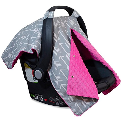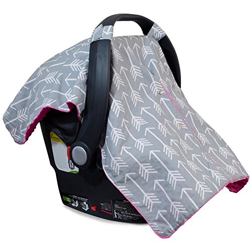 Premium Carseat Canopy Cover and Nursing Cover- Large Arrow Pattern w/ Hot Pink Minky | Best Infant Car Seat Canopy for Girls | Cool/ Warm Weather Car Seat Cover | Baby Shower Gift 4 Breastfeeding Mom