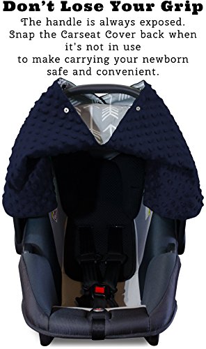 2 in 1 Carseat Canopy and Nursing Cover Up with Peekaboo Opening | Large Infant Car Seat Canopy for Boy or Girl | Best Baby Shower Gift for Breastfeeding Moms | Arrow Pattern with Navy Blue Minky