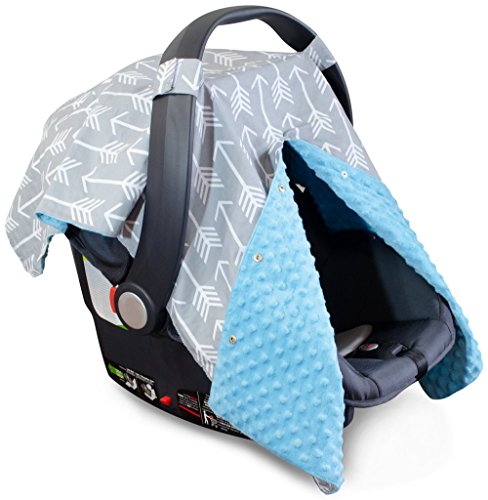 Premium Carseat Canopy Cover and Nursing Cover- Large Arrow Pattern w/ Blue Minky | Best Infant Car Seat Canopy, Boy or Girl | Cool/ Warm Weather Car Seat Cover | Baby Shower Gift 4 Breastfeeding Moms
