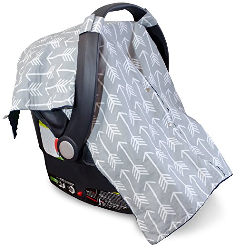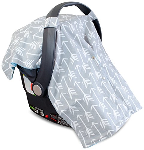 Premium Carseat Canopy Cover and Nursing Cover- Large Arrow Pattern w/ Grey Minky | Best Infant Car Seat Canopy, Boy or Girl | Cool/ Warm Weather Car Seat Cover | Baby Shower Gift 4 Breastfeeding Moms
