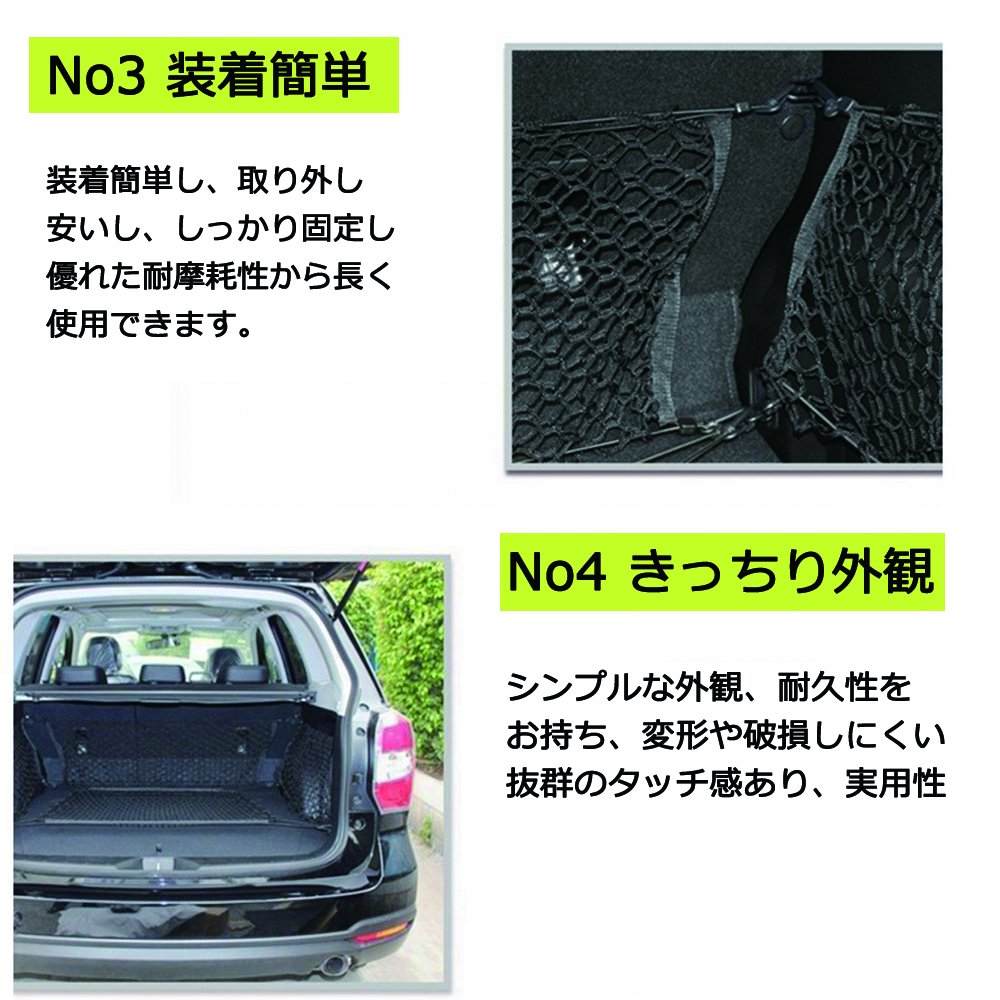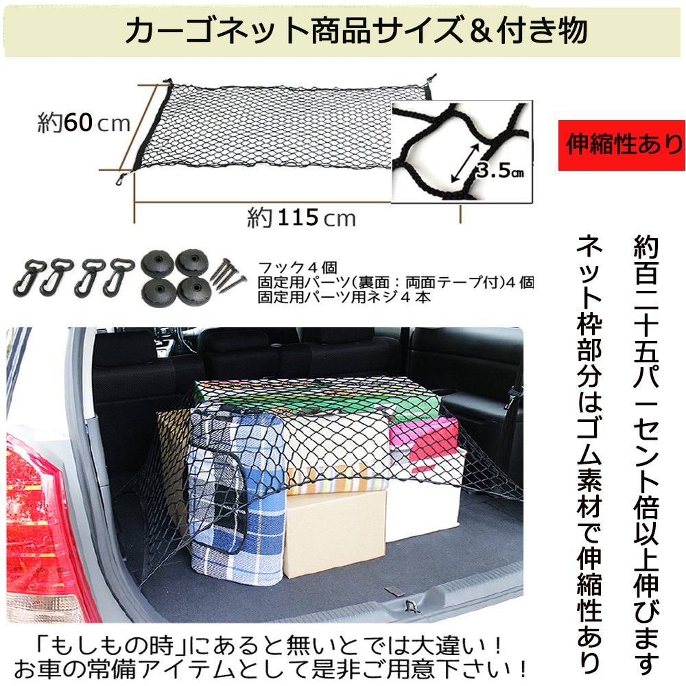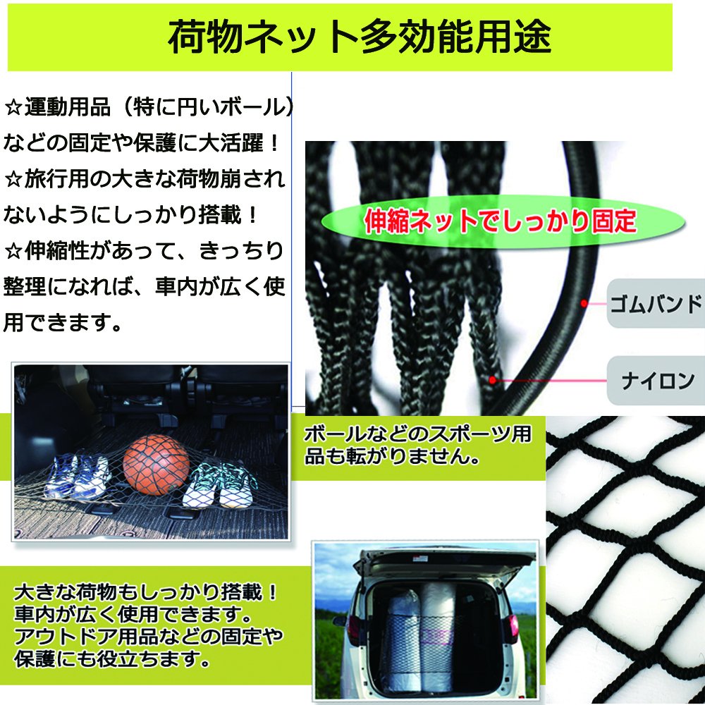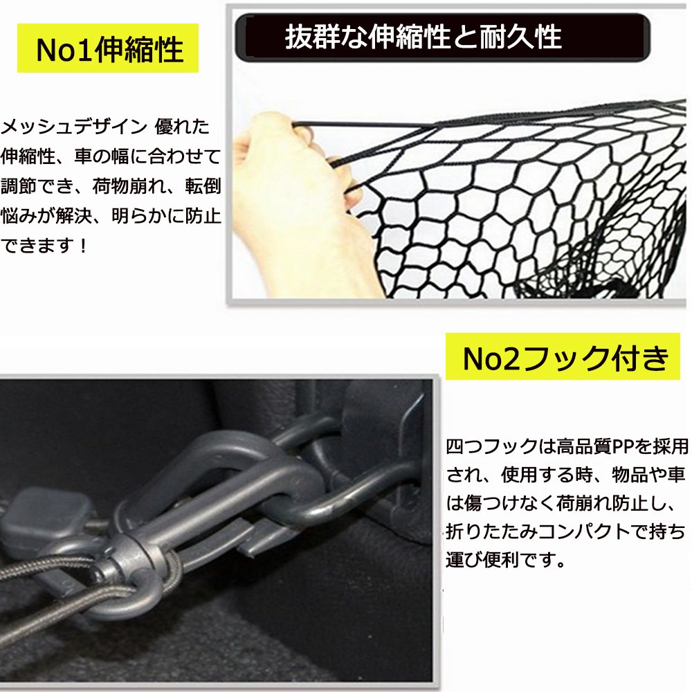 Mesh design Excellent elasticity, adjustable to the width of the car, luggage collapse, falling trouble