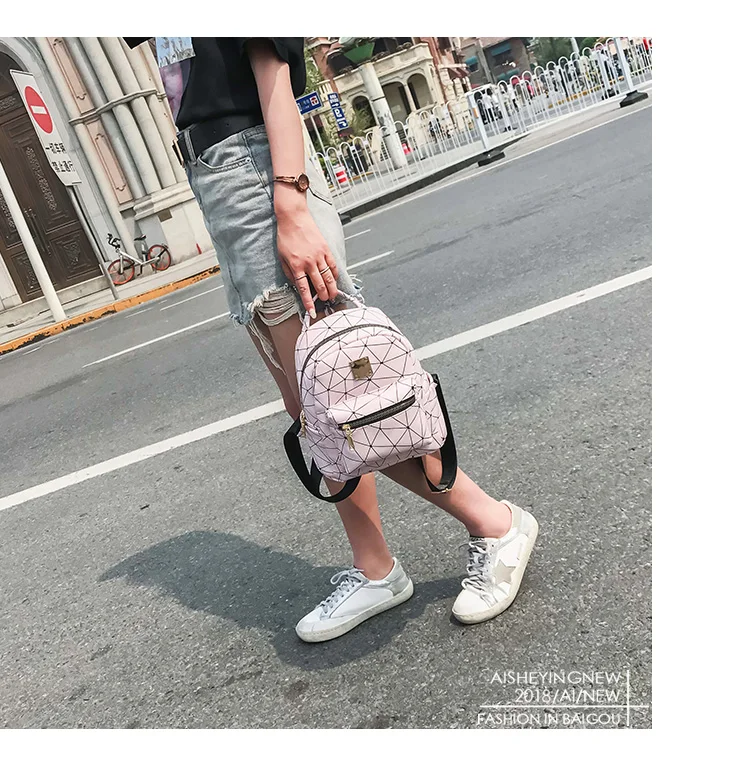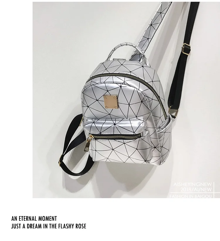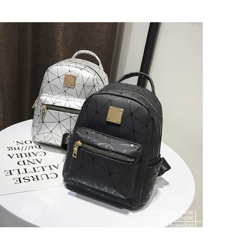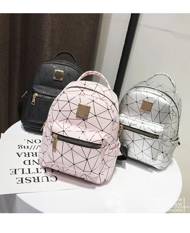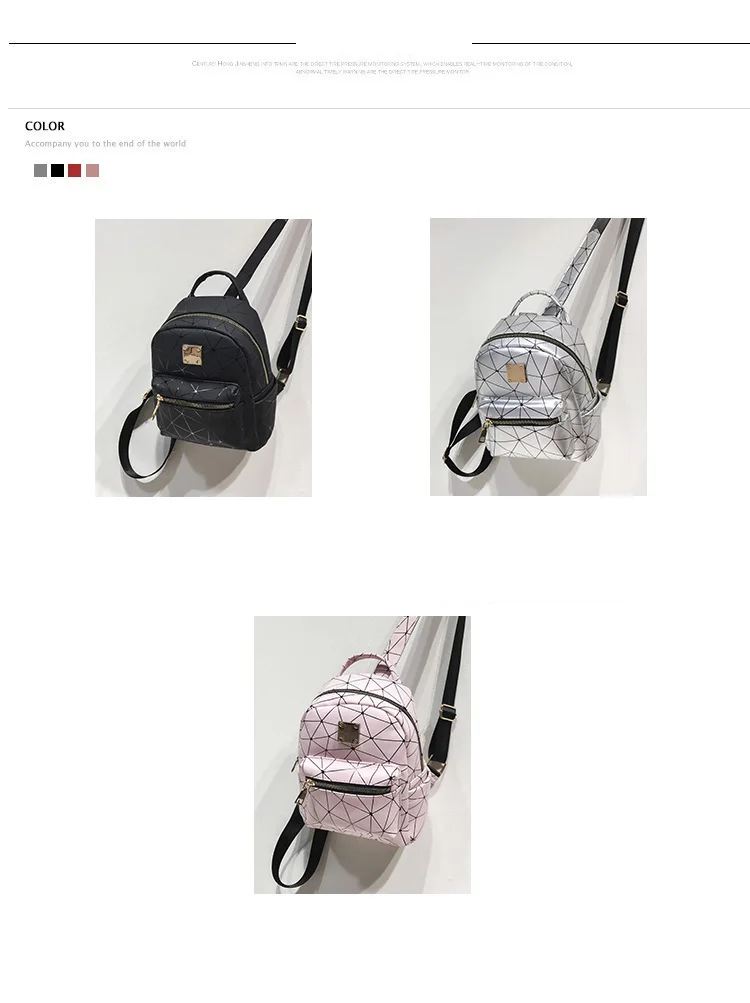 Color:black pink silver women backpack