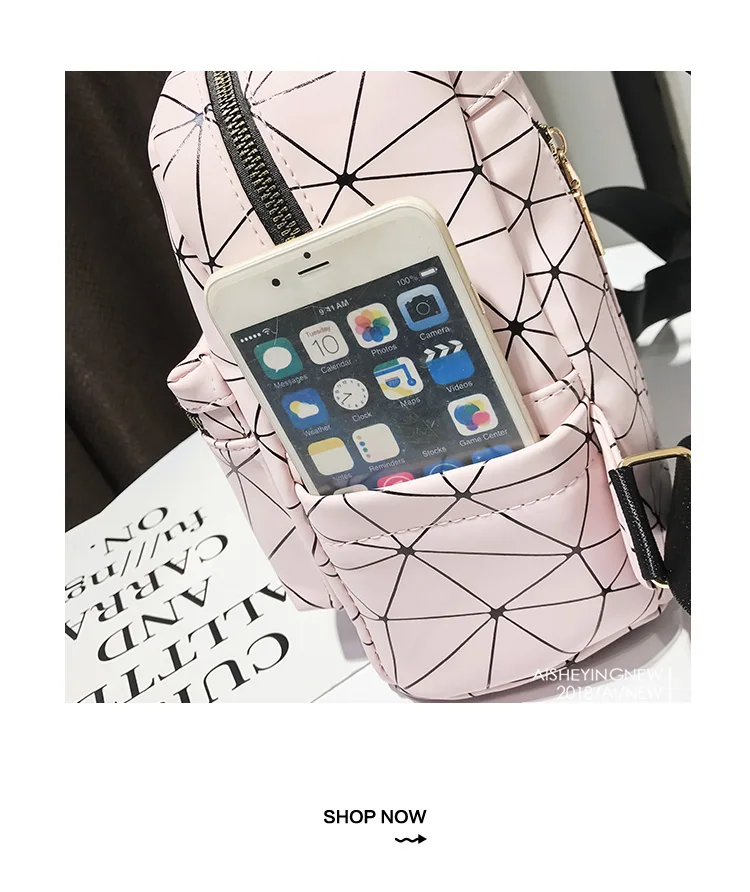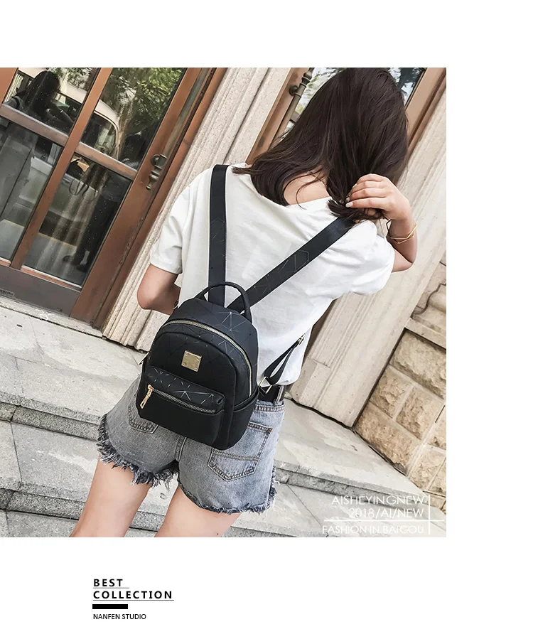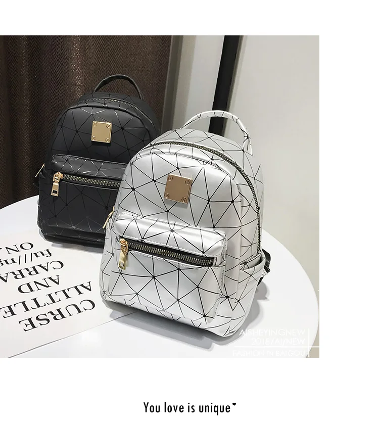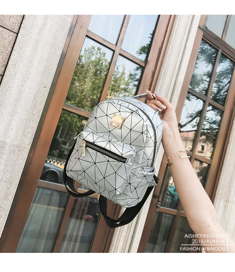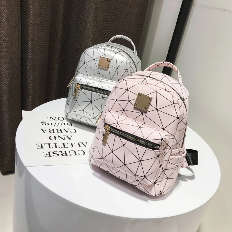 Color:black pink silver women backpack