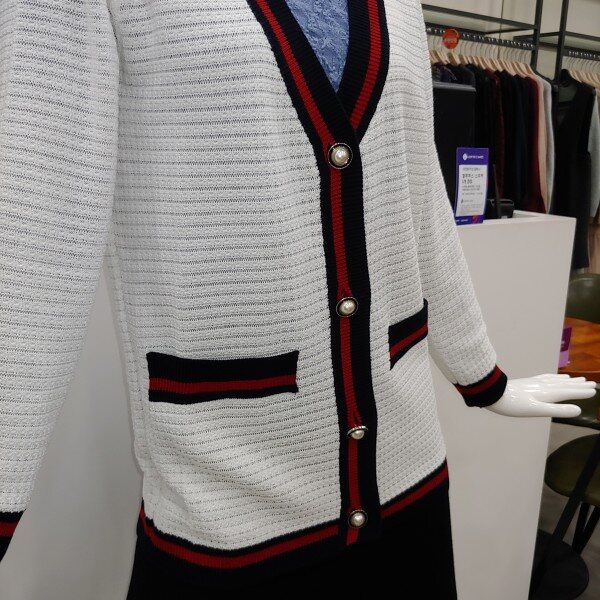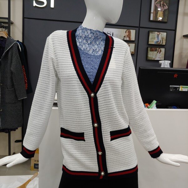 라인 배색이 포인트인 가디건으로 가볍게 입을수 있어요
