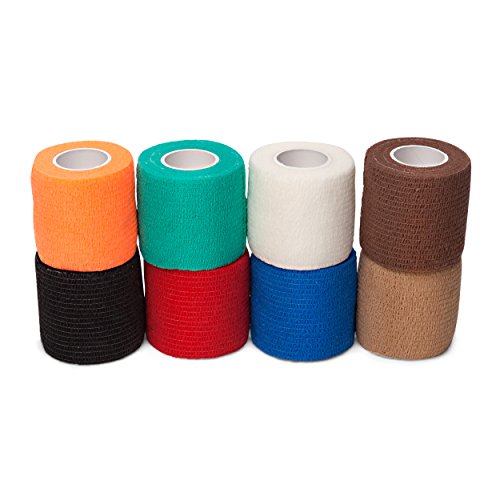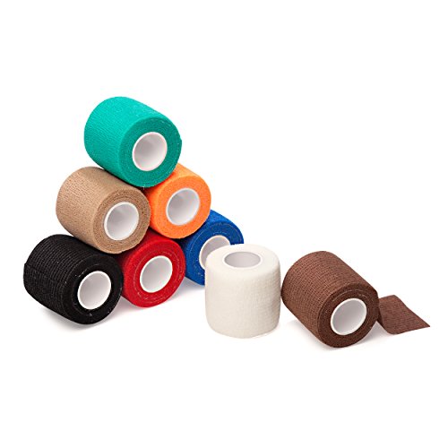 - SET OF 8 IN VARIETY OF COLORS: Value pack, each roll is individually poly bagged and measures 2 inches in width and 5 yards in length. Use to protect any body part; works well on ankle, wrist, finger, toe, elbow and knee. Also safe for pets.a