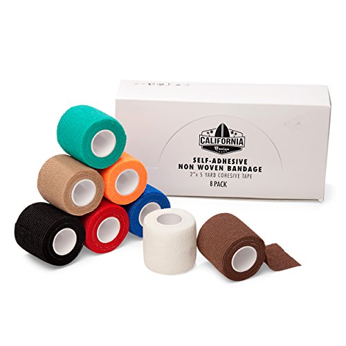 - STRONG SELF-ADHESIVE: The California Basics bandage is a strong self-adherent tape that offers excellent support. It will not slip, eliminating the need for frequent readjustments. Unlike non-adhesive bandages, self-adherent tape does not require clips and pins to stay in place. Material is water-resistant and will not easily come loose by sweat or water.