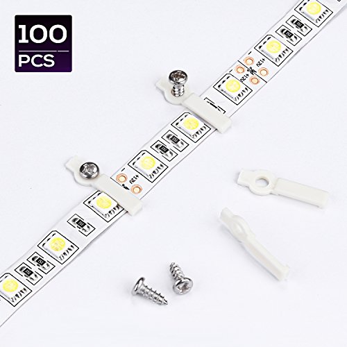 100pcs Mounting Brackets, Mounting Clips for 10mm Wide IP44 Non-waterproof 5050 LED Strip Light, Screws Included