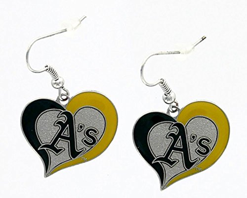 MLB OAKLAND ATHLETIC'S TEAM LOGO SWIRL HEART EARRING SPORTS FAN GIFT